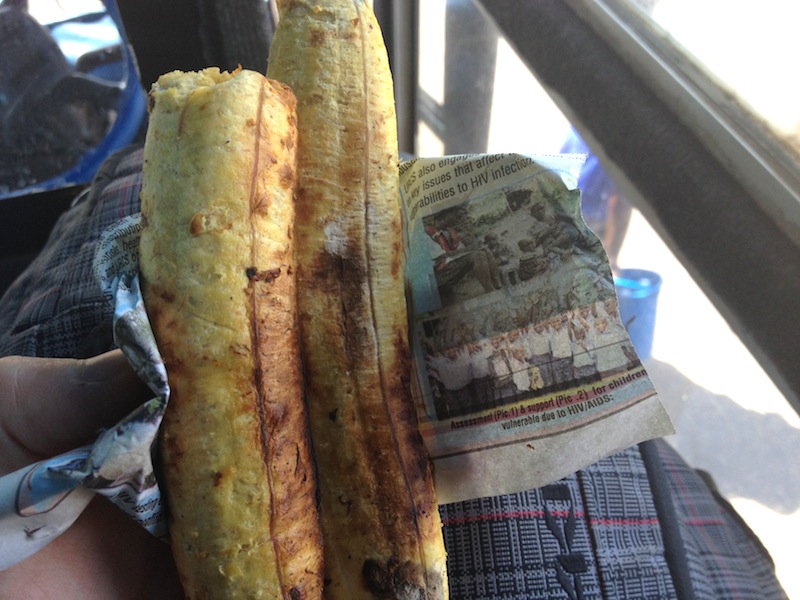 The only time I see plantains here is “gonja”, when they take yellow plantains, peel them, and roast over charcoal. So good! I think I see a few boiled ones, too, still unpeeled.