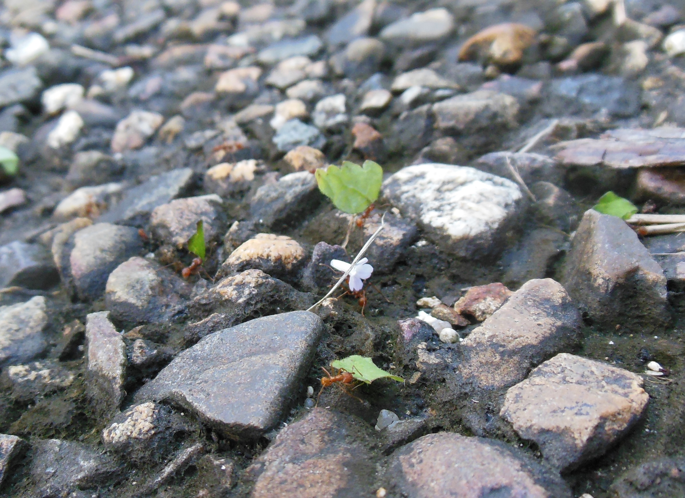 I also spotted leaf-cutter ants a few times. I particularly like the little fellow toting a flower. It’s impressive that these teeny little ants actually beat a path into the grass as they work.