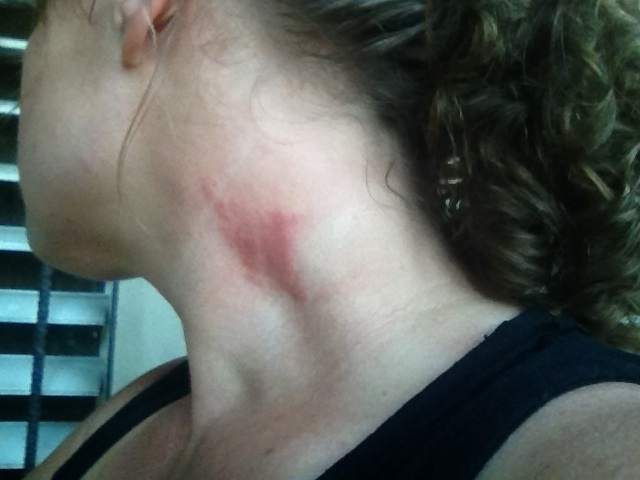 NB- playing in the jungle isn’t without risk.  When I visited the Yucatan as a college student I discovered that I am acutely sensitive to Black Poisonwood, also known as Chechem.  In Mexico I developed blisters on my legs when I unwittingly came in contact with the plant, and despite being very aware of the tree when I visited Belize 8 years ago I still somehow came in contact with some and again got blisters.  On one of my morning walks up to Xunantunich I went off the beaten path and down an overgrown 4X4 trail.  It seems that I again got in contact with Chechem, and developed a chemical burn on my neck (no, it’s not a hickey, I promise!).  The traditional remedy for this is topical application of sap or tea made from the bark of the Gumbo Limbo tree.  While I was in Belize I used this remedy, and it did seem to help, especially on my arms where I got a rash (I believe) from walking under a poisonwood tree while it was raining (as I said, I appear to be acutely sensitive).