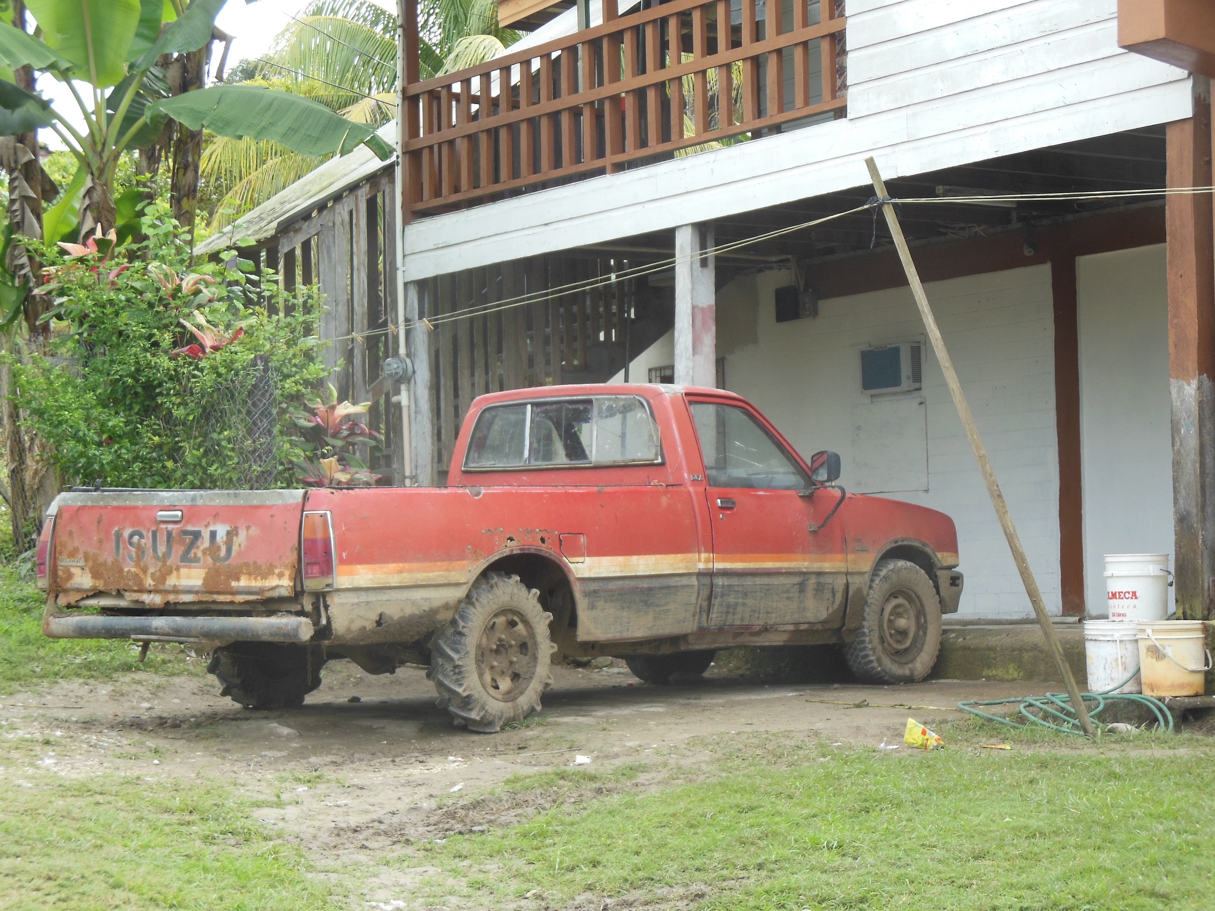 A pretty typical Belizean vehicle (check out those rear tires!)… It would be fun if the vehicles came with biographies (I think many make it to Belize after being written off in other countries).