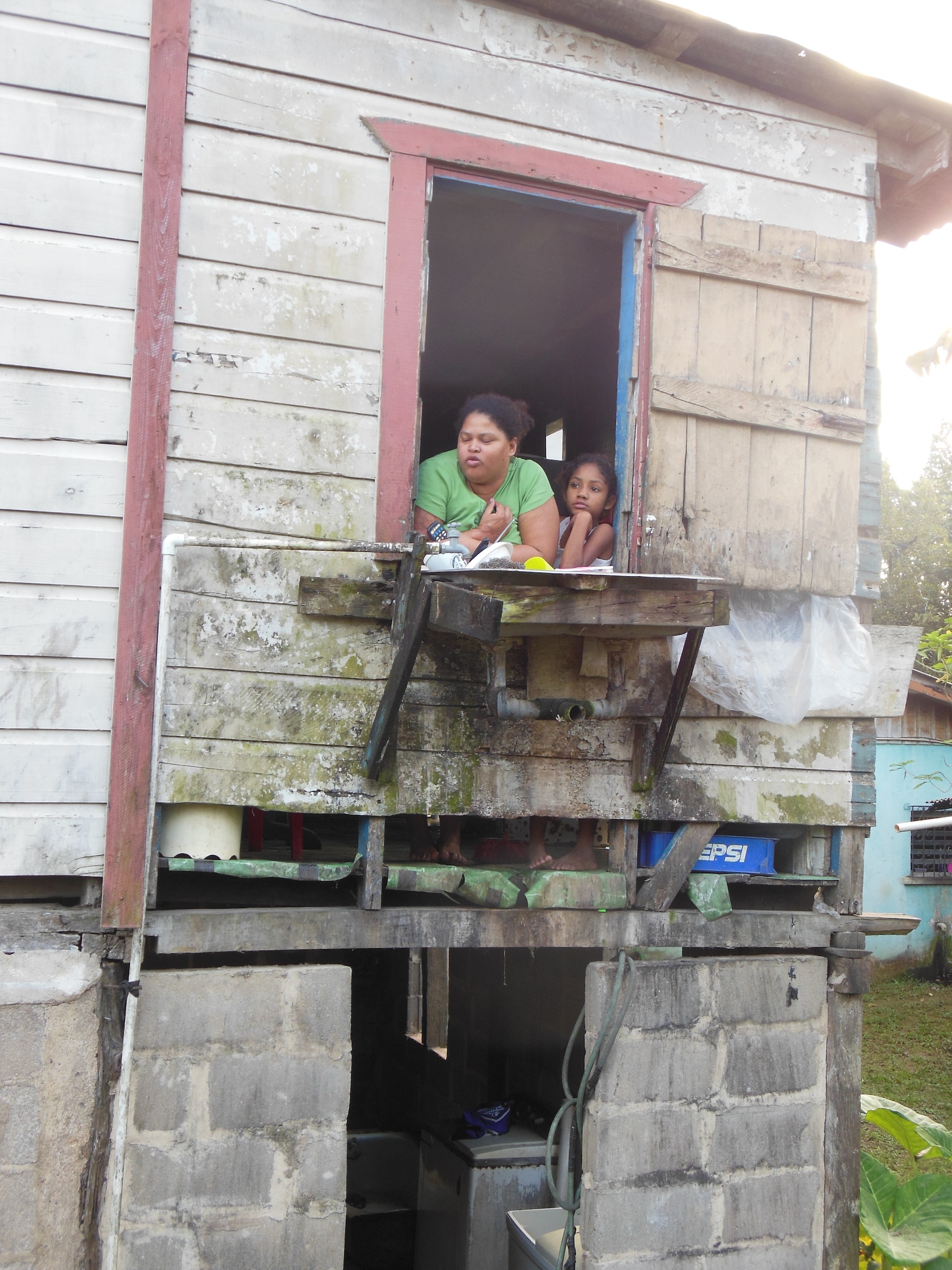 The per capita GDP of Belize is 1/5 of the US, and the standard of living is very low.  People live in very crude houses- often just one or two rooms for a rather large family.  While touring San Ignacio with Hector Silva (check out my last post for more on this interesting fellow) we stopped to chat with this woman… Check out the family’s living situation- you can see their feet from the outside (I suppose it makes sweeping easier), and their sink is outside their window, draining directly onto the ground below (warm running water is a rare luxury in Belize).